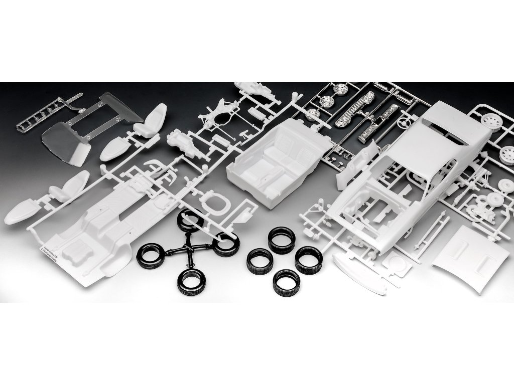 Detailne vypracovaná stavebnica plastového modelu automobilu vrátane podrobného návodu na zloženie.